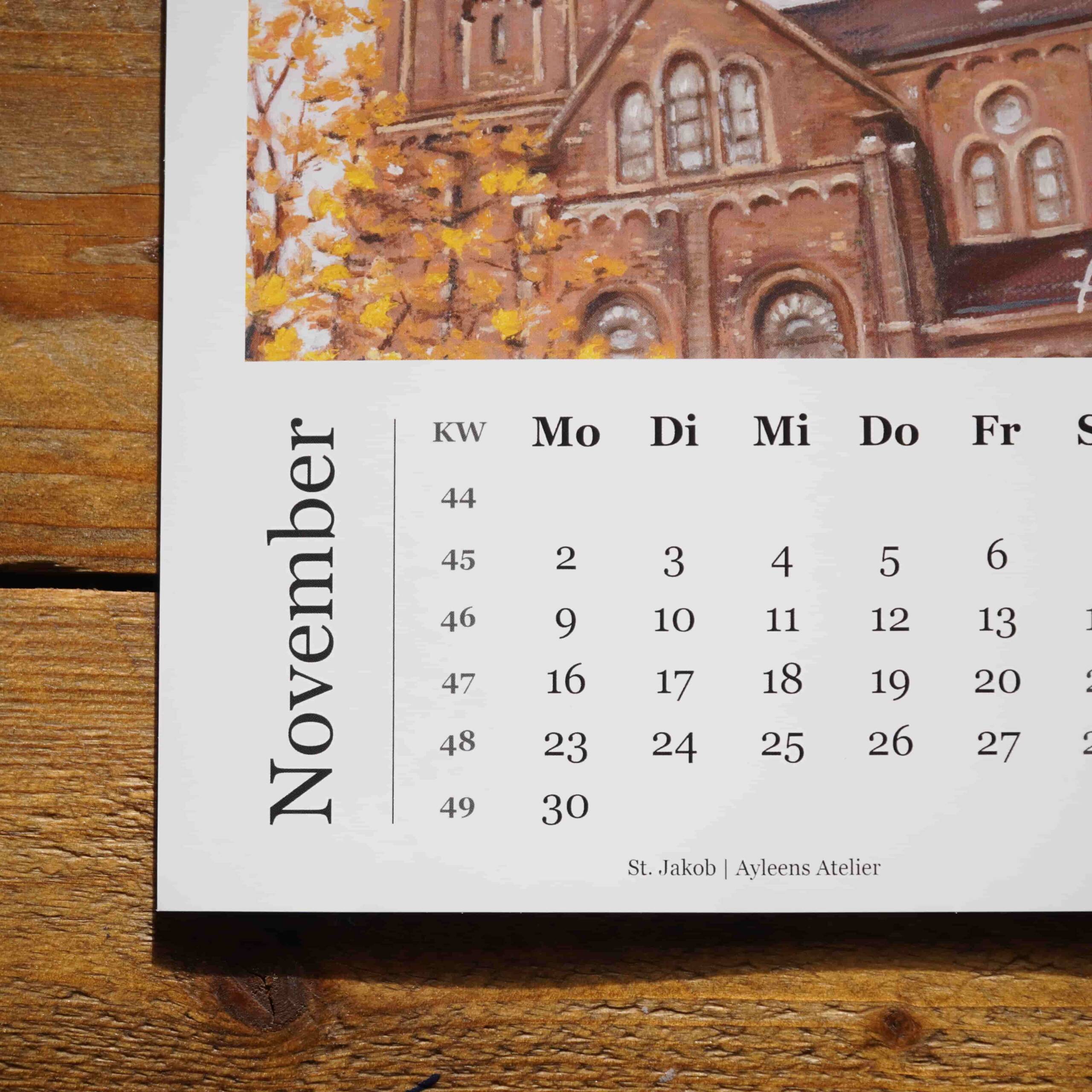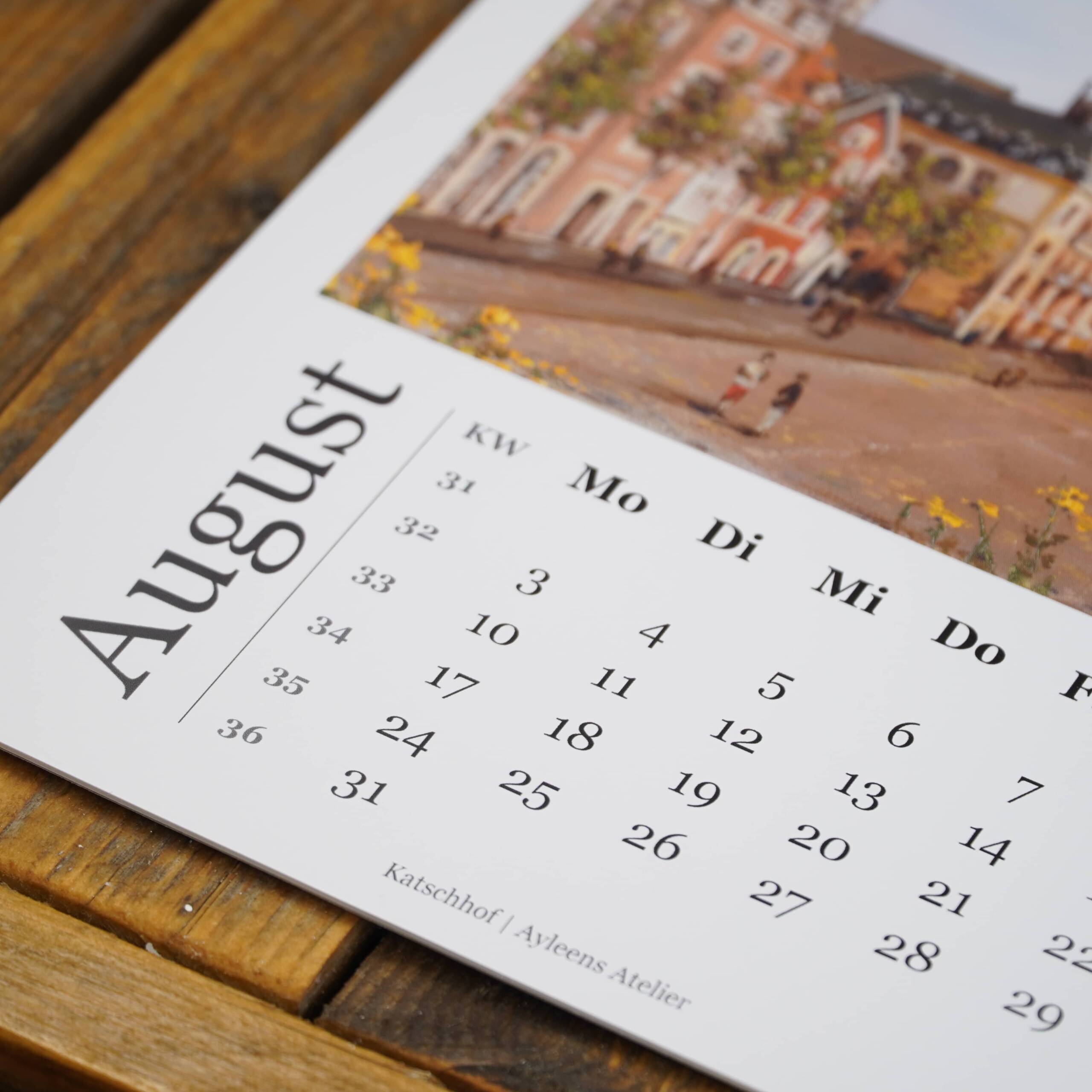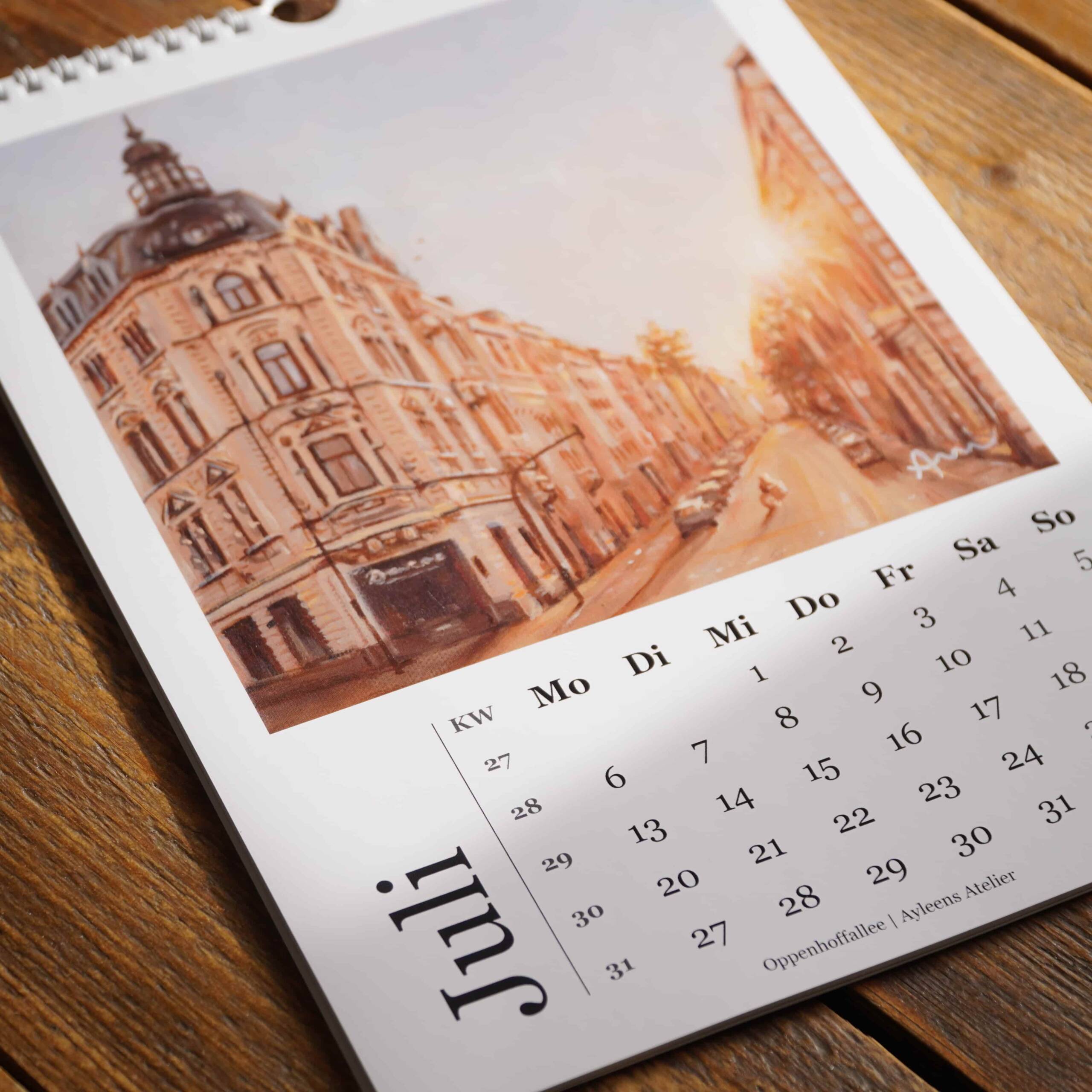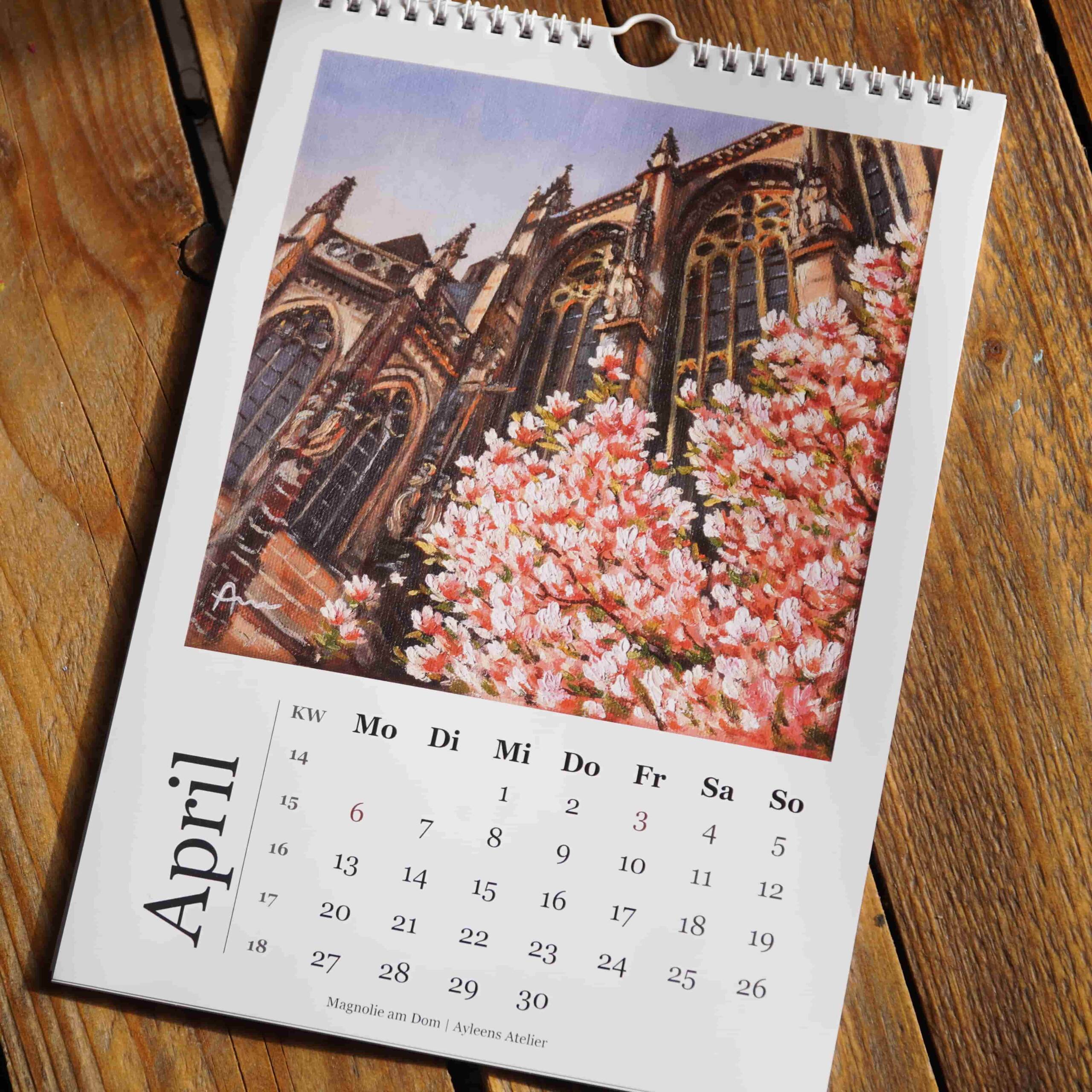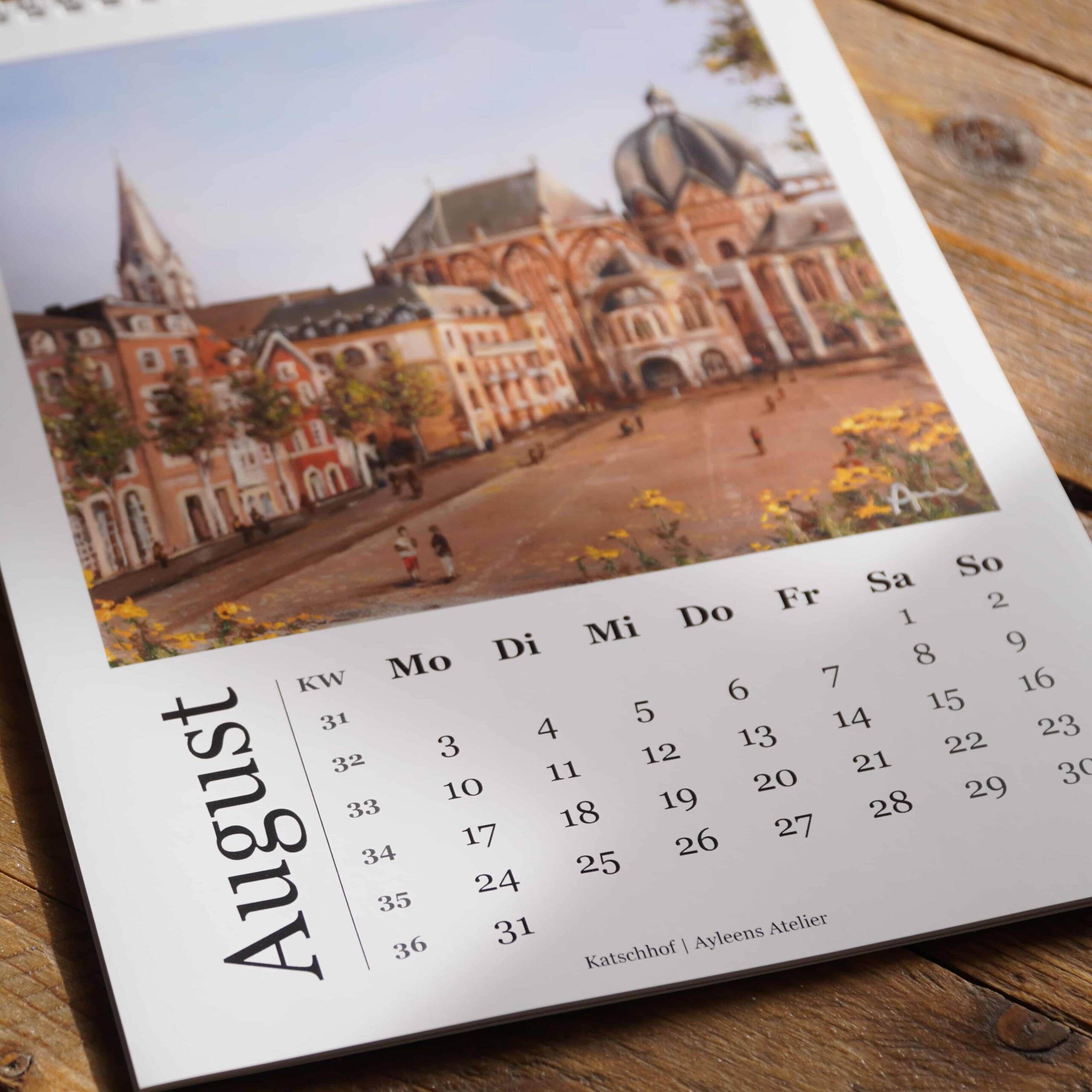 Dieser Kunstkalender ist für mich ein Herzensprojekt. Er zeigt alle zwölf Gemälde meiner Aachen-Reihe – Monat für Monat ein neuer Blick auf die Stadt, in der ich aktuell wohne und die mich täglich inspiriert. Jeder Monat erzählt eine andere Geschichte, jedes Motiv fängt ein Stück Aachener Leben, Architektur und Atmosphäre ein. Wir haben den Kalender mit viel Liebe gestaltet – entstanden ist so eine wunderschöne Möglichkeit, Aachen durch ein ganzes Jahr hinweg zu begleiten. Perfekt für dein Zuhause, dein Büro oder als besonderes Geschenk für Aachen-Liebhaber.