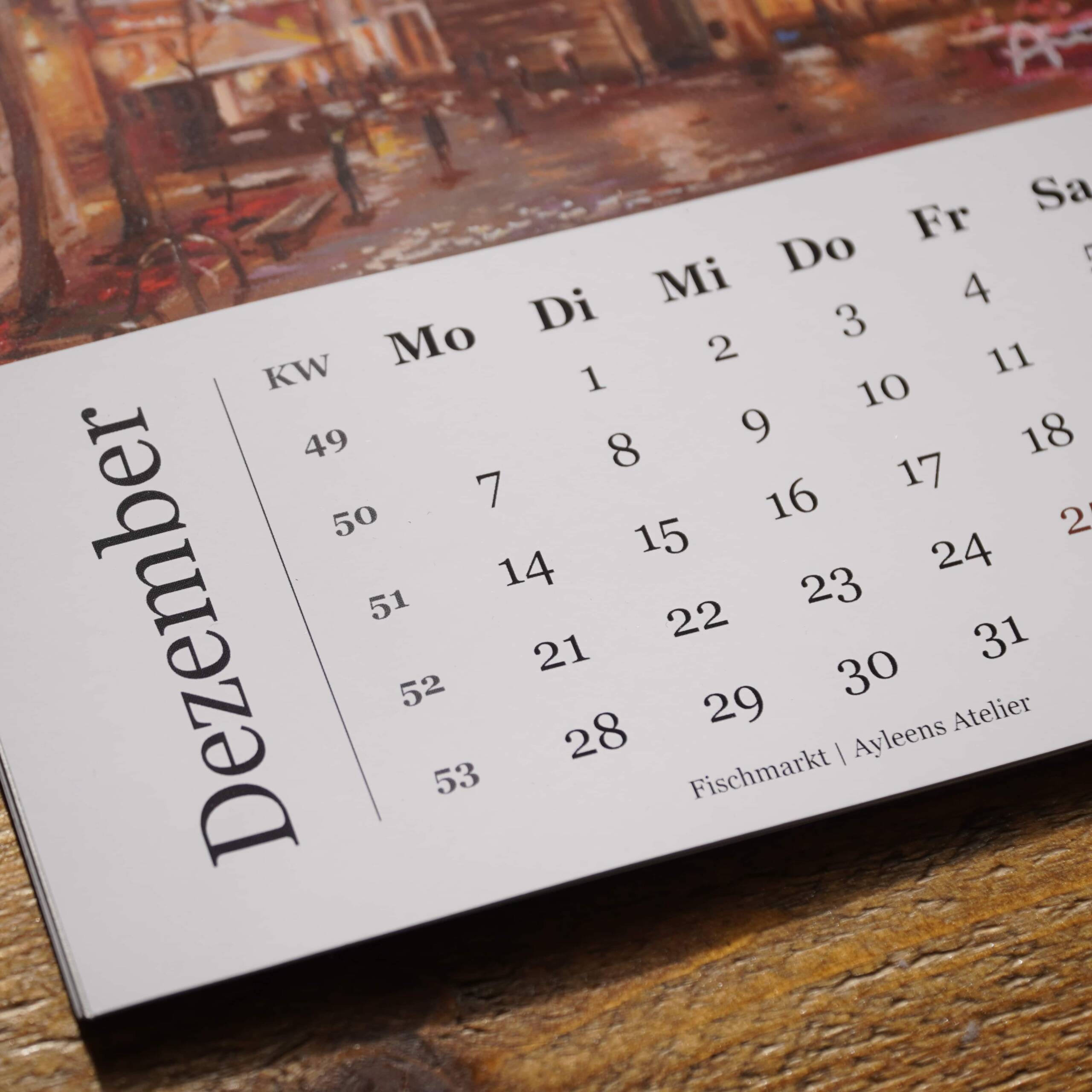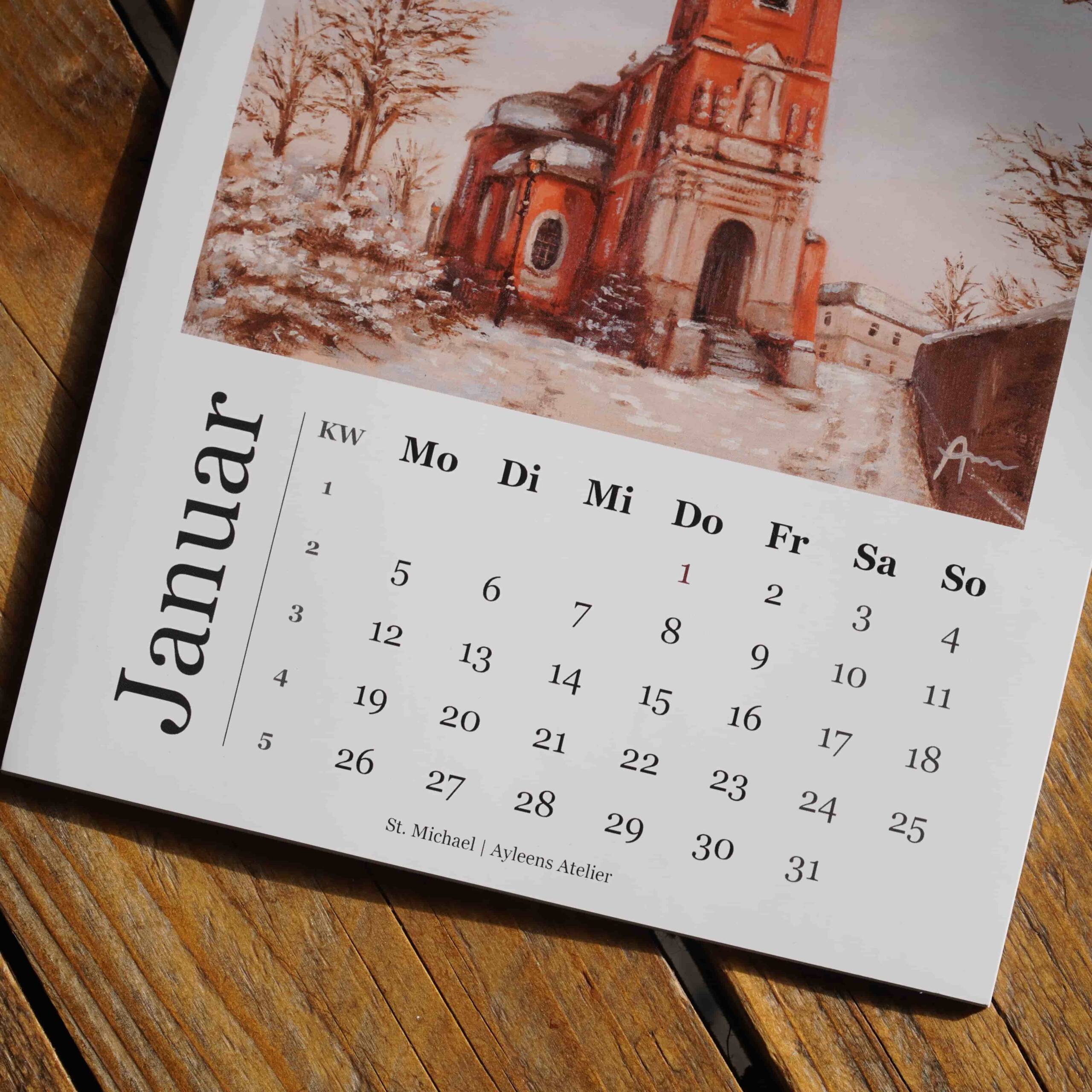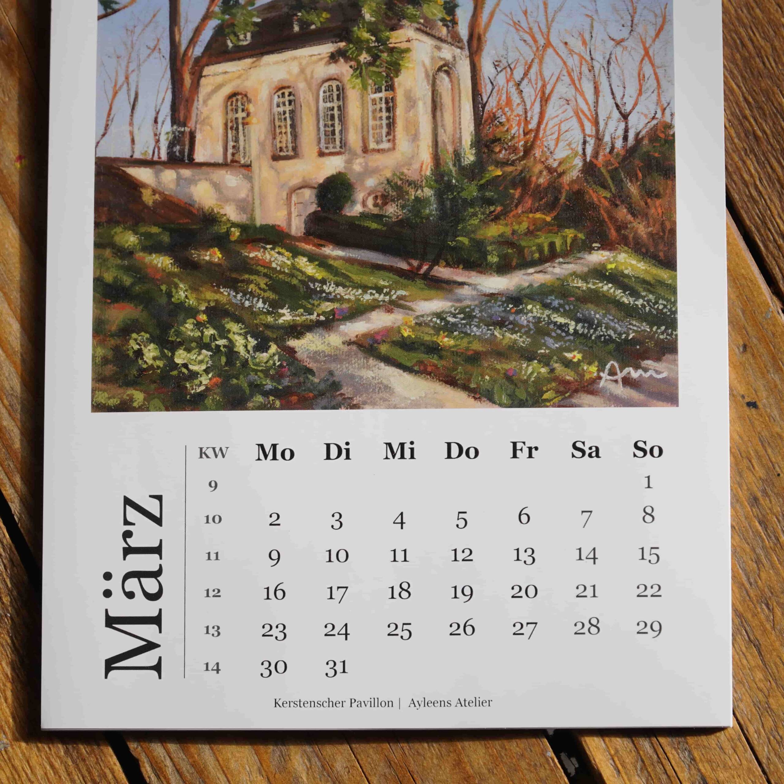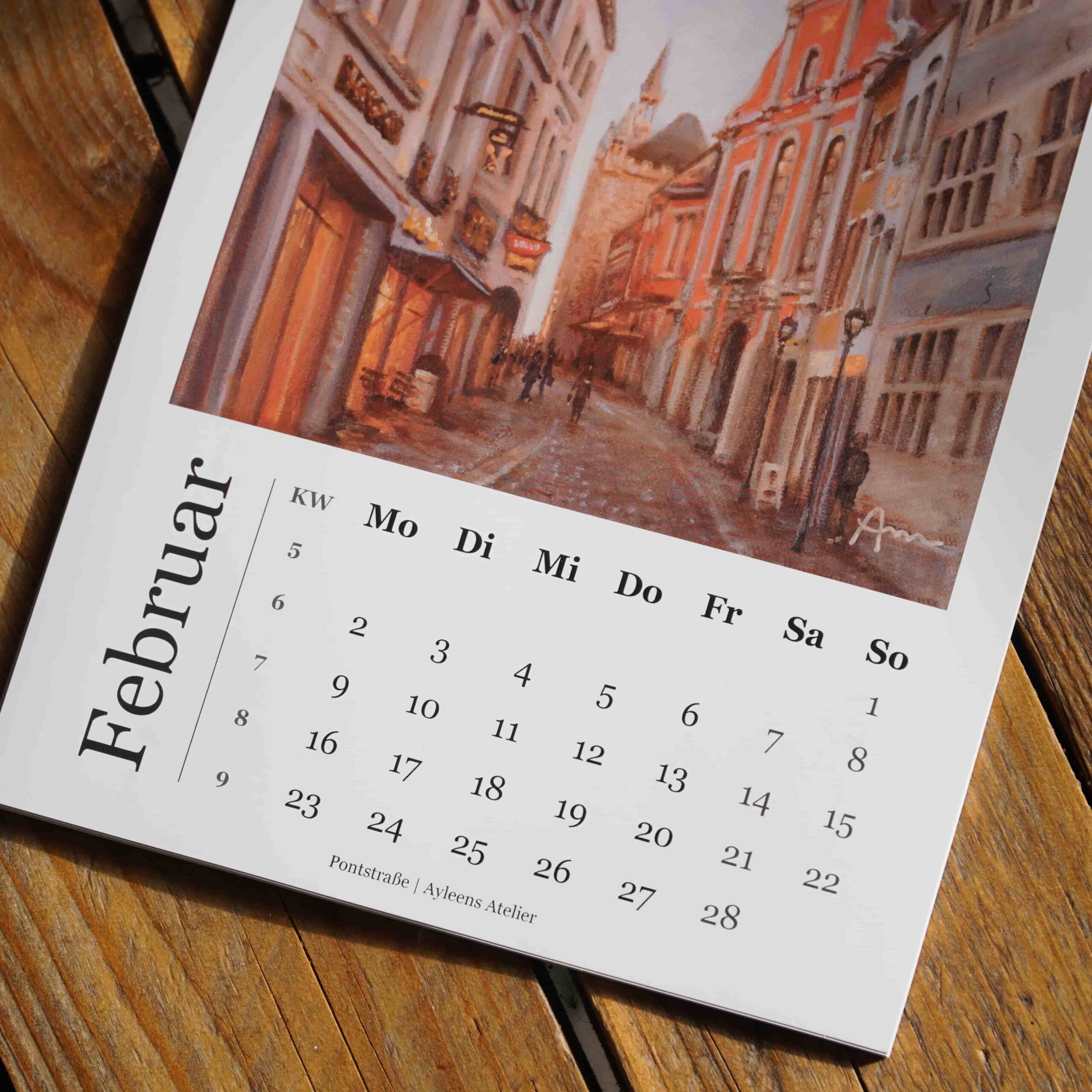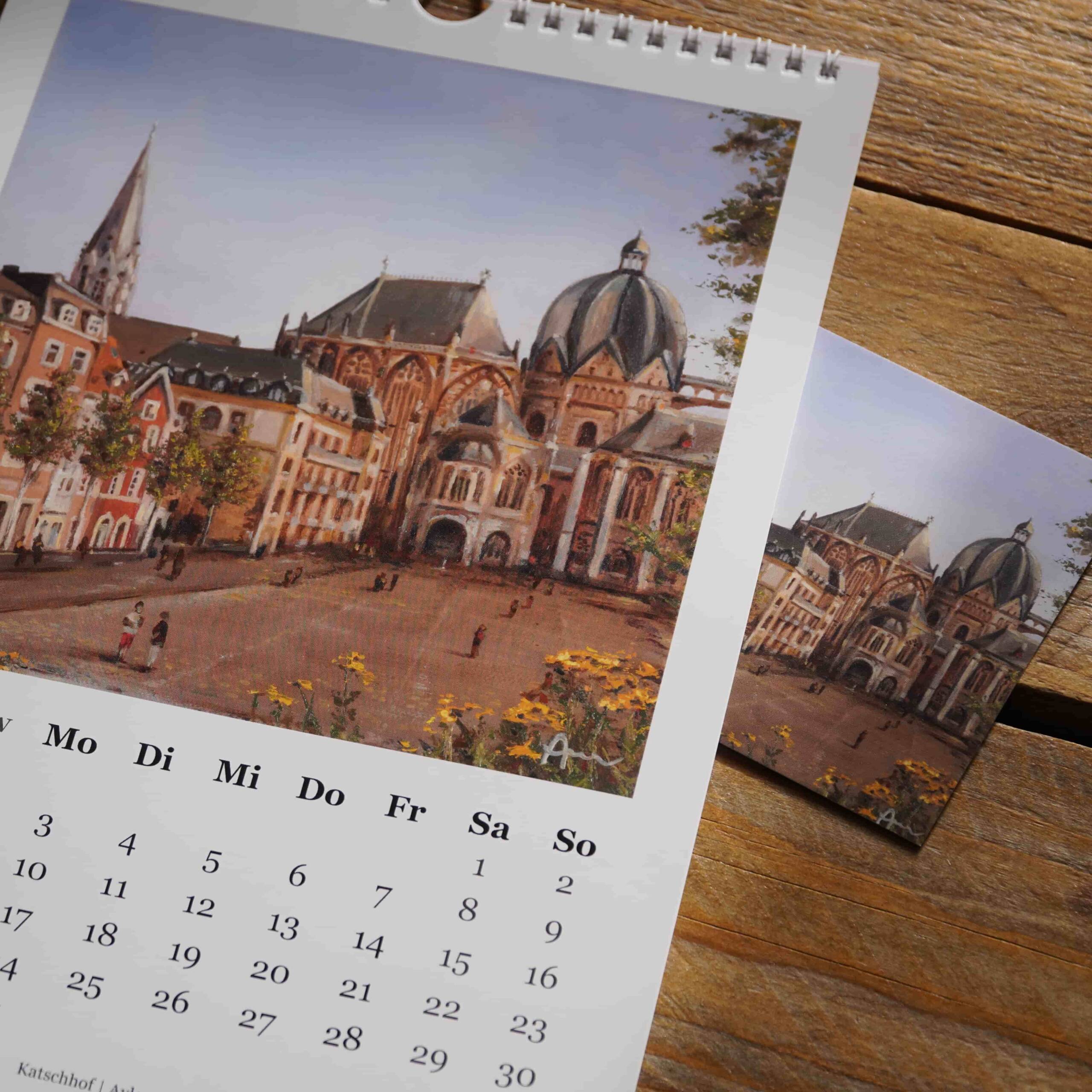 Jedes Kalenderblatt zeigt ein Werk meiner Aachen-Reihe -passend zum jeweiligen Monat