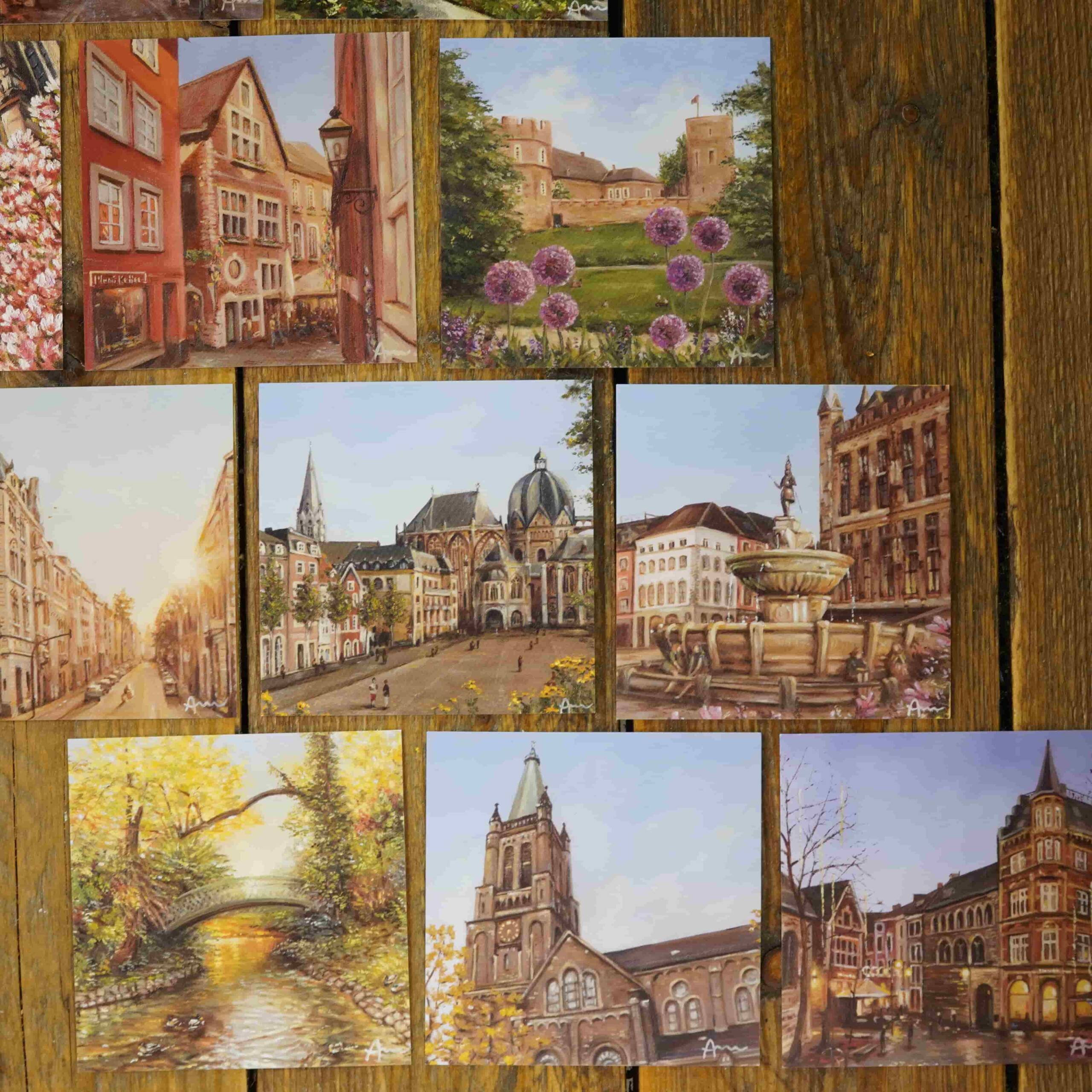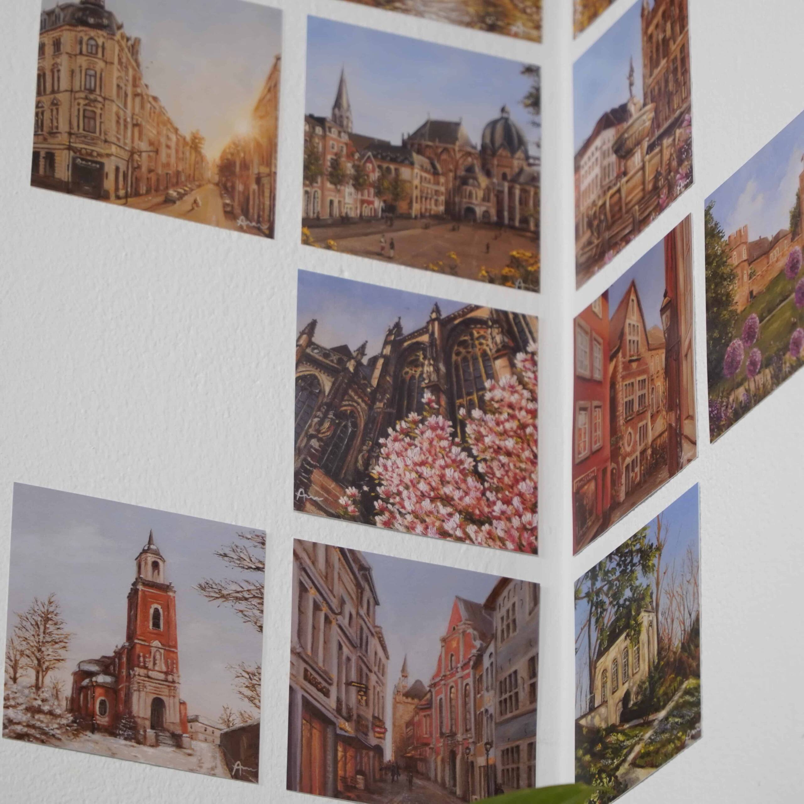 Dieses schöne 12-teilige Set, bestehend aus meinen Gemäldekarten, ist eine Anlehnung an meine Aachen-Gemälde-Reihe, mit Ölgemälden von Januar bis Dezember aus Aachen.