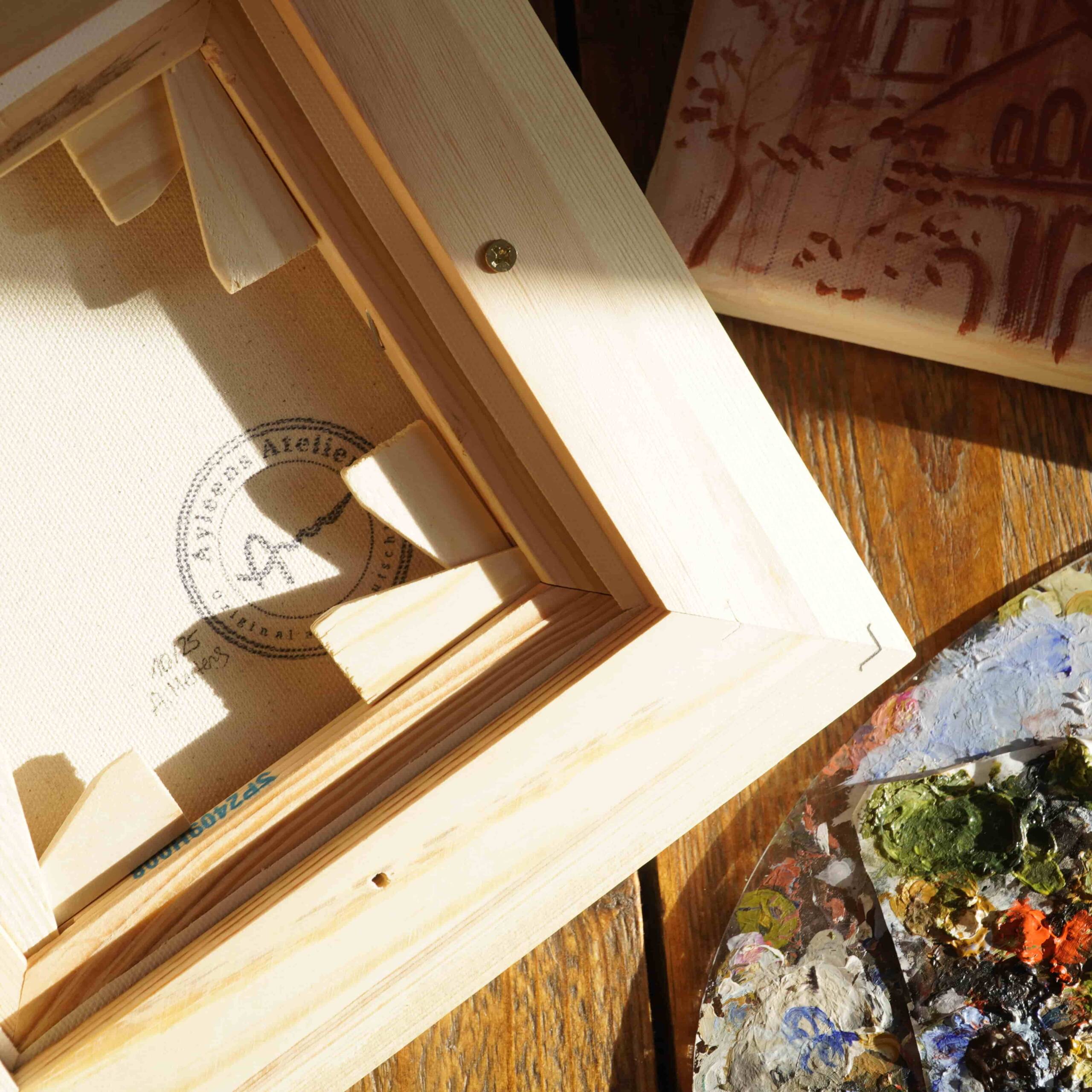 Die 20×20 cm große Leinwand besteht zu 100 % aus Baumwolle, hat eine mittlere Körnung und ein Gewicht von 300 g/m². Bevor ich mit der Malerei beginne, wird sie mehrfach grundiert, um optimale Farbbrillanz und Haltbarkeit zu gewährleisten.