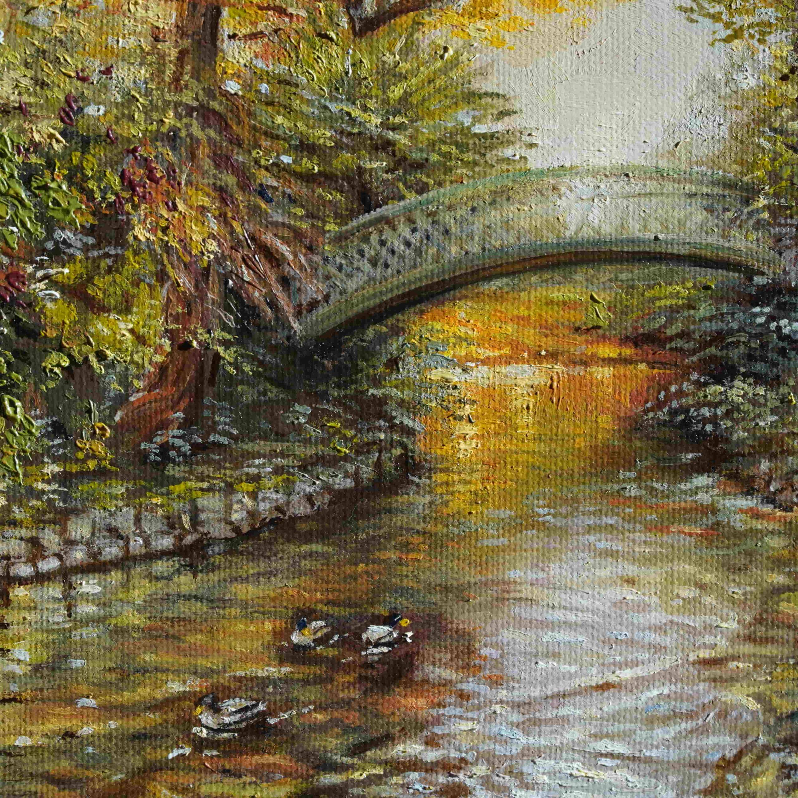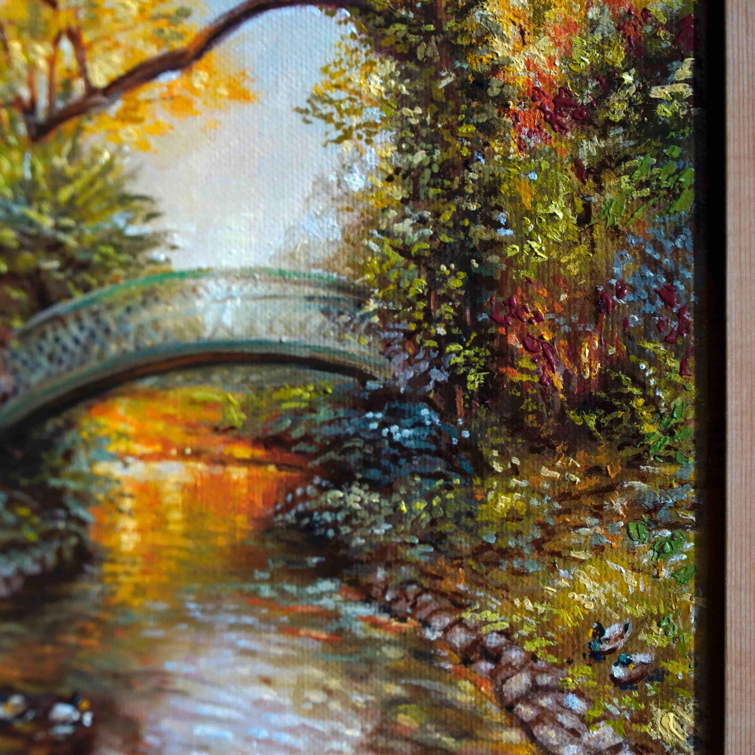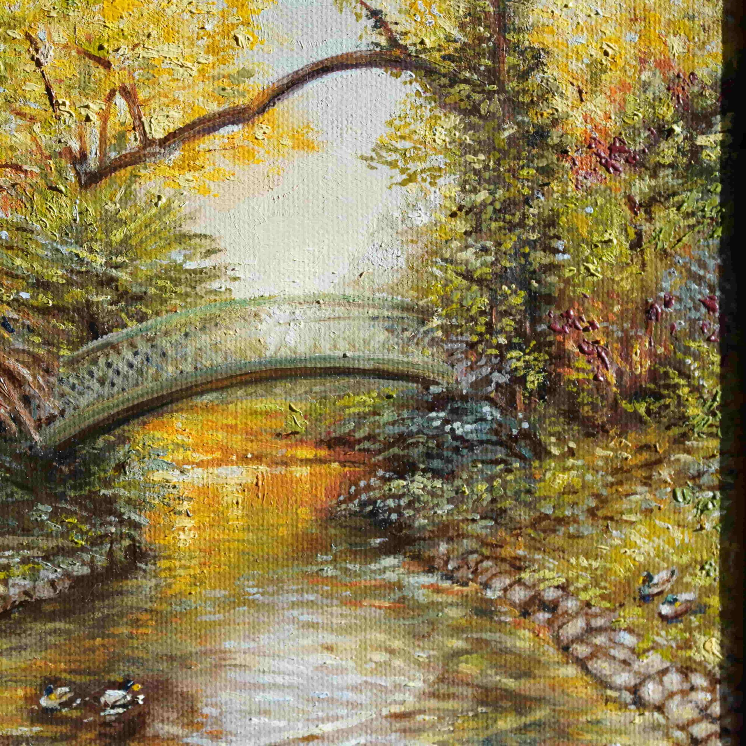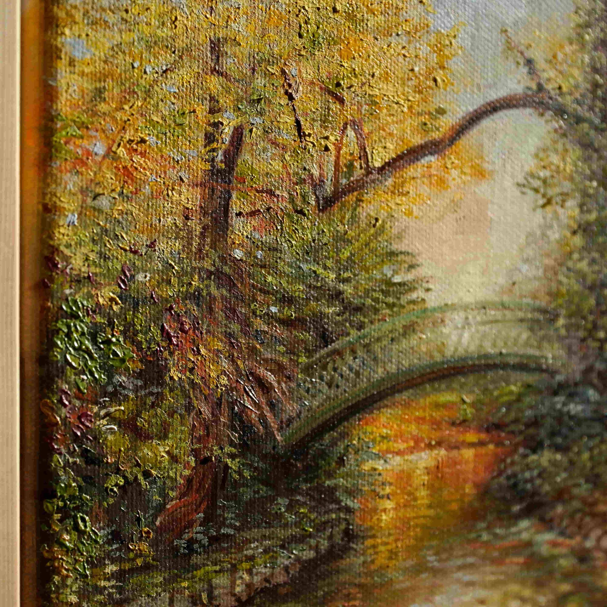Originales Öl-Gemälde – Brücke im Aachener Stadtpark im Oktober