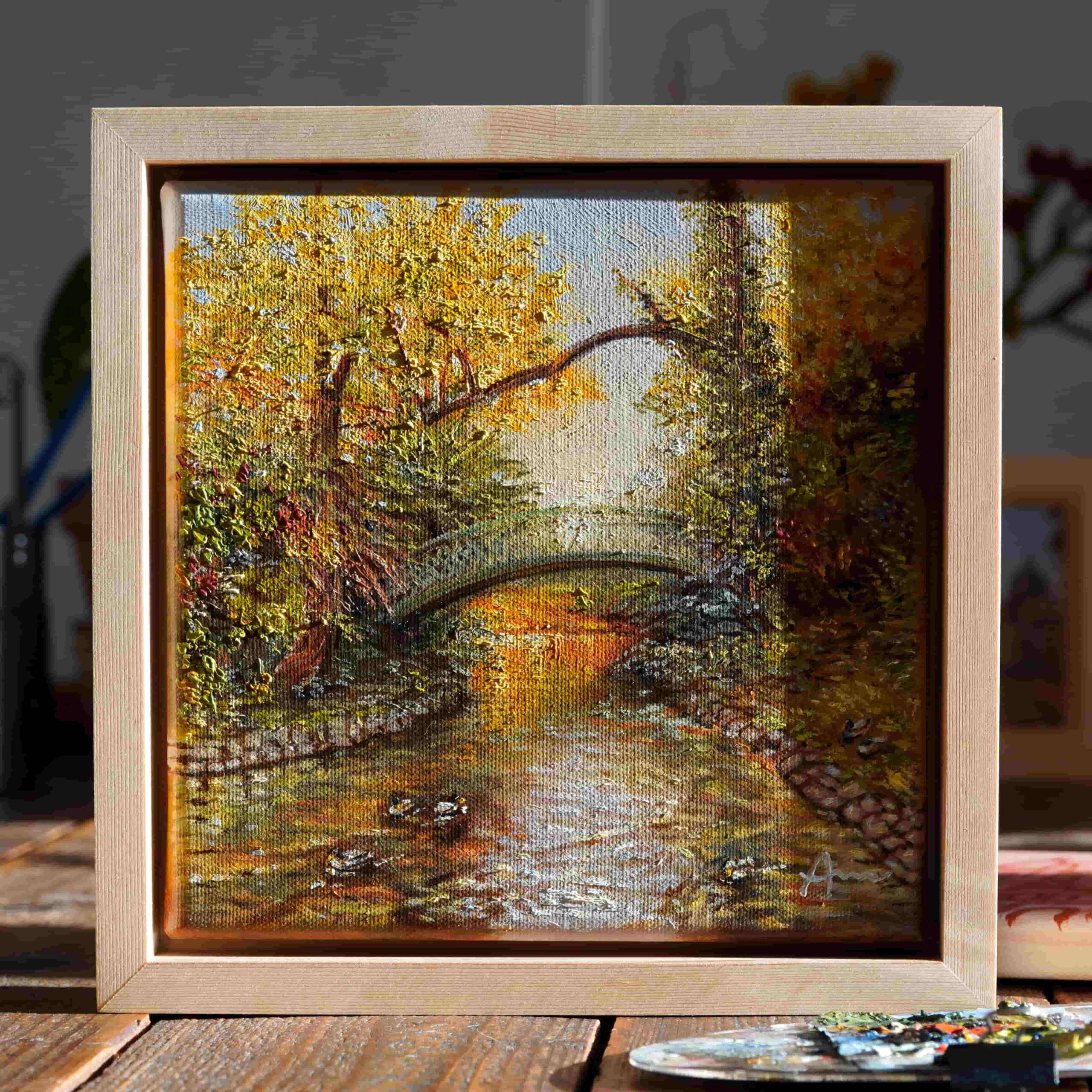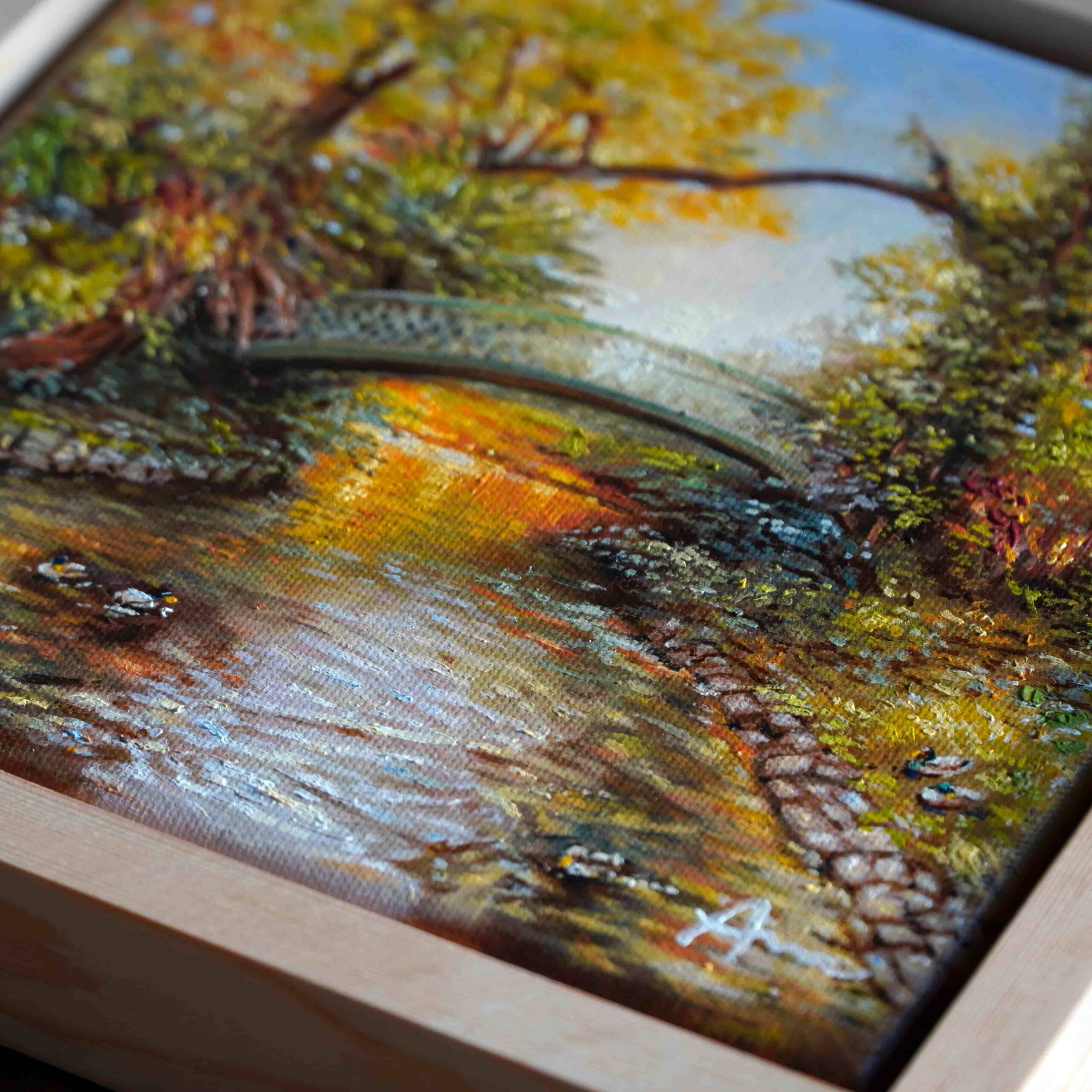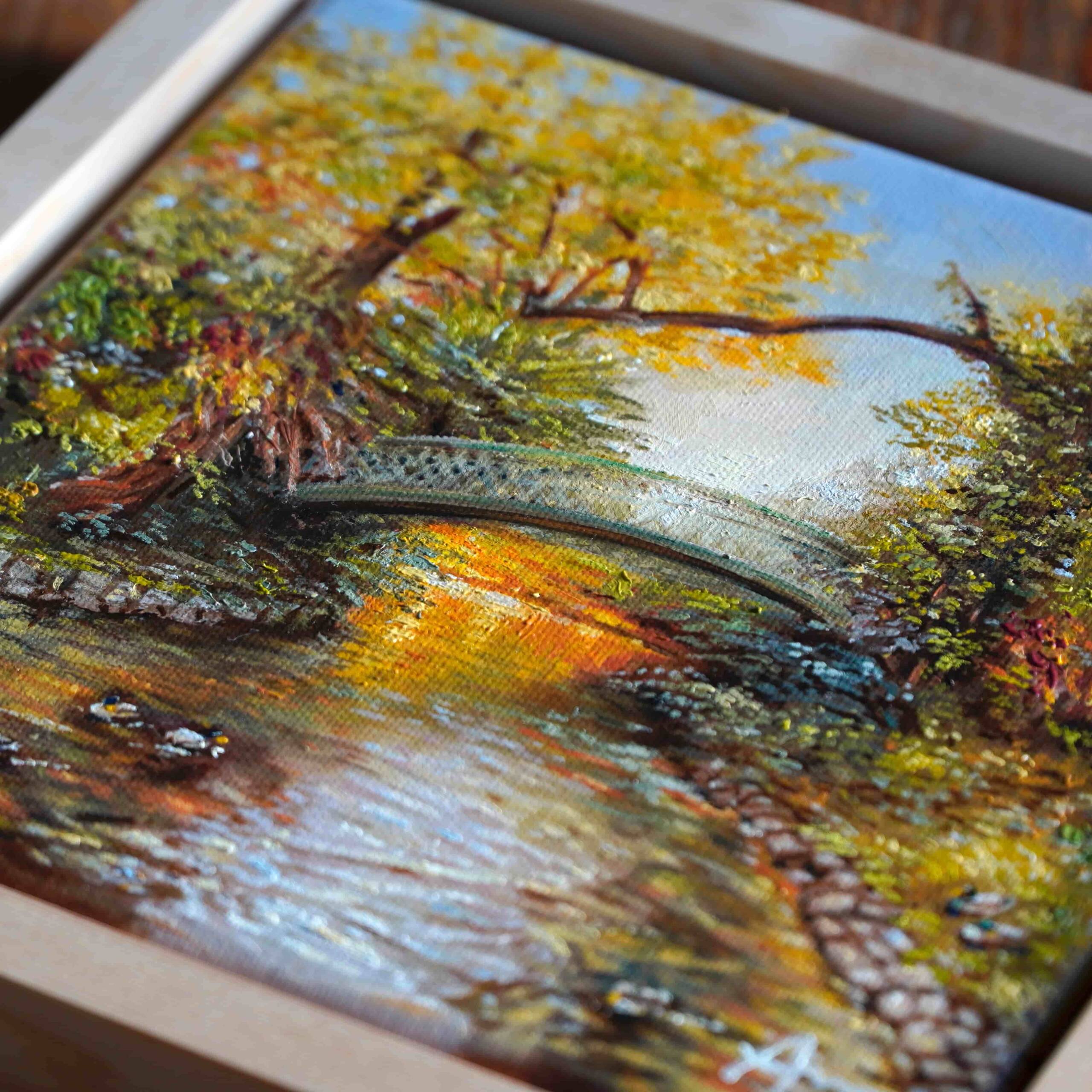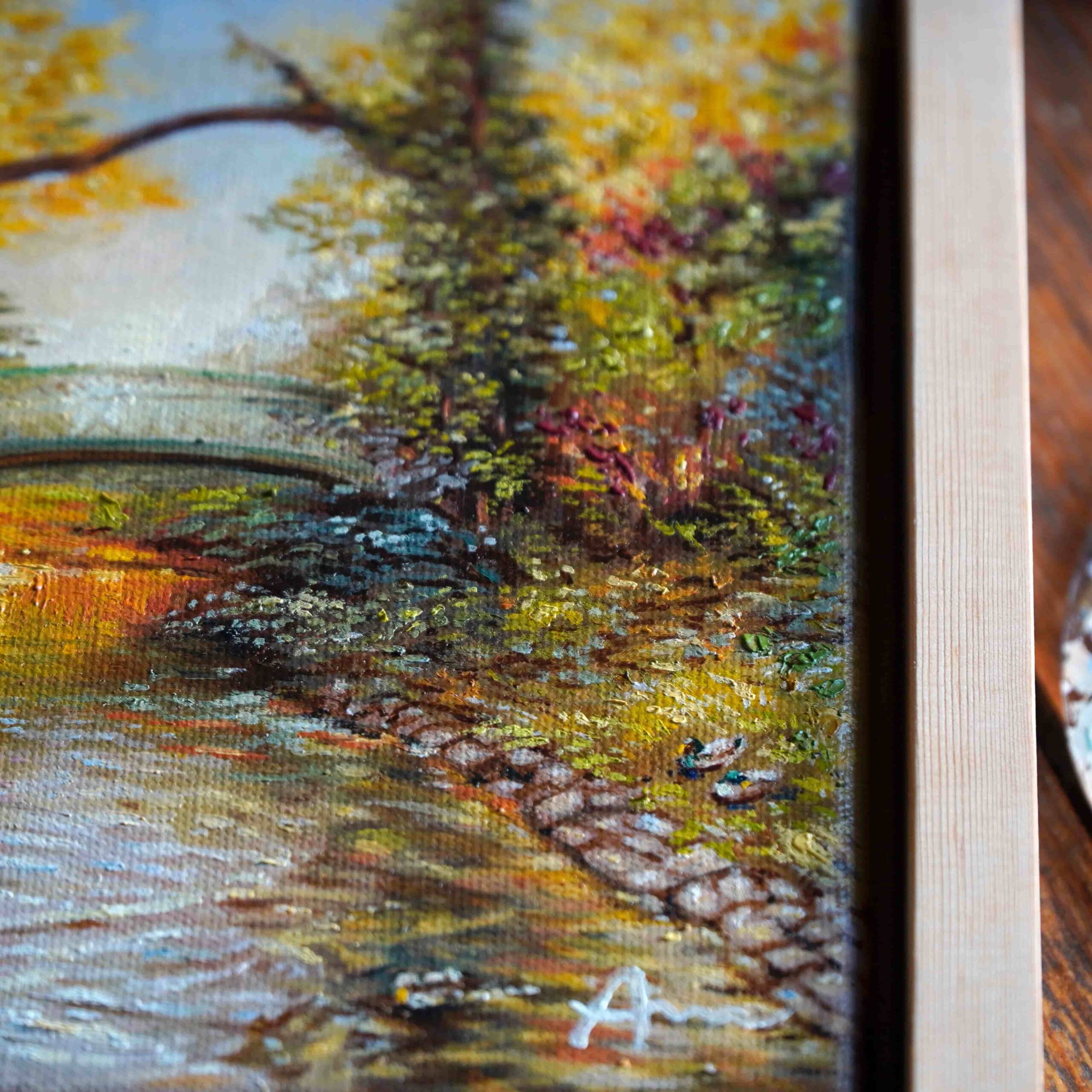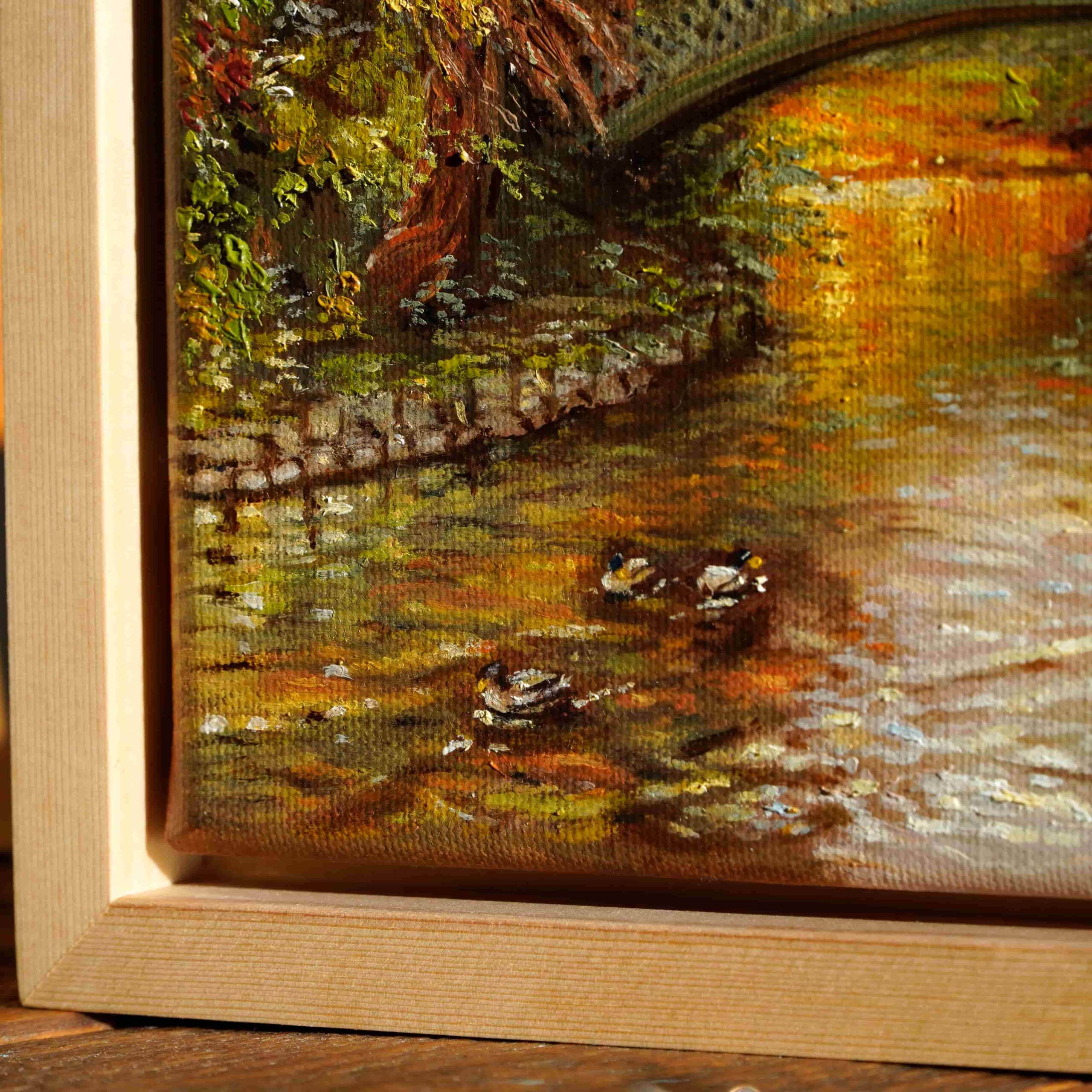 Originales Öl-Gemälde – Brücke im Aachener Stadtpark im Oktober