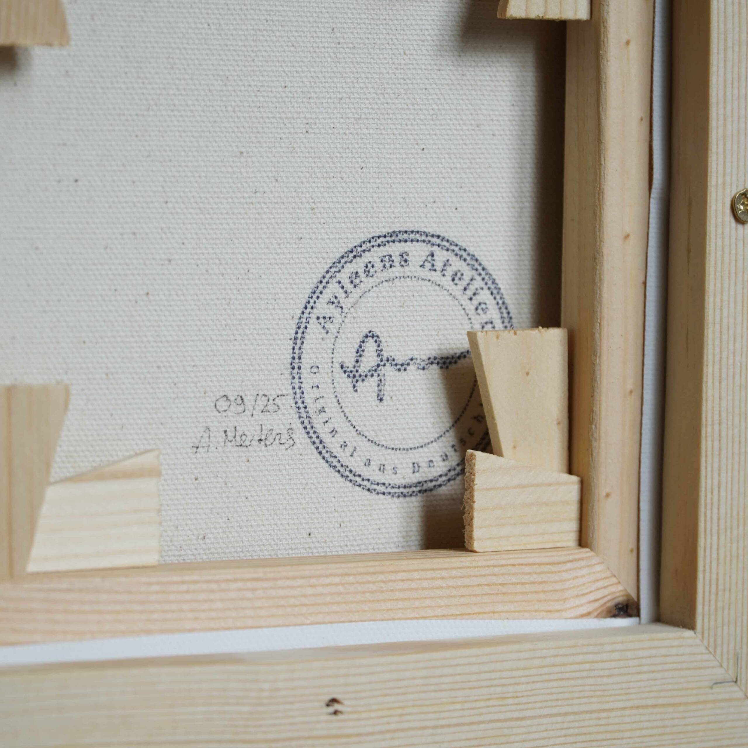 Nach dem abschließenden Firnis wird die Leinwand in einen hochwertigen, naturbelassenen Schattenfugenrahmen eingesetzt. Dank der praktischen Zackenaufhängung kannst du das Kunstwerk direkt z.B. in deinem Wohnzimmer, Flur oder Schlafzimmer anbringen – und dir so ein Stück aus dem wunderschönen Aachen nach Hause holen.