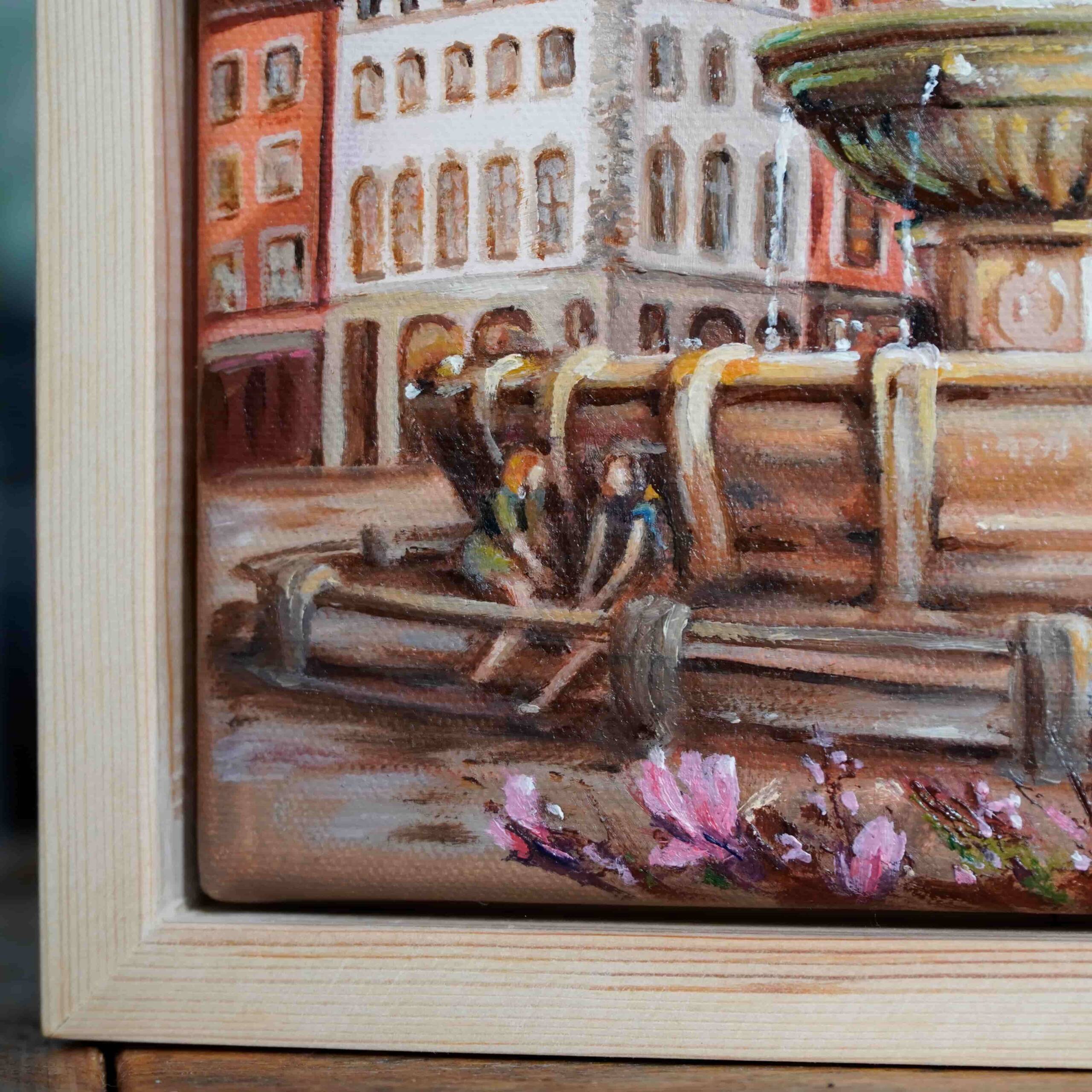 Originales Öl-Gemälde vom Karlsbrunnen in Aachen am Rathaus